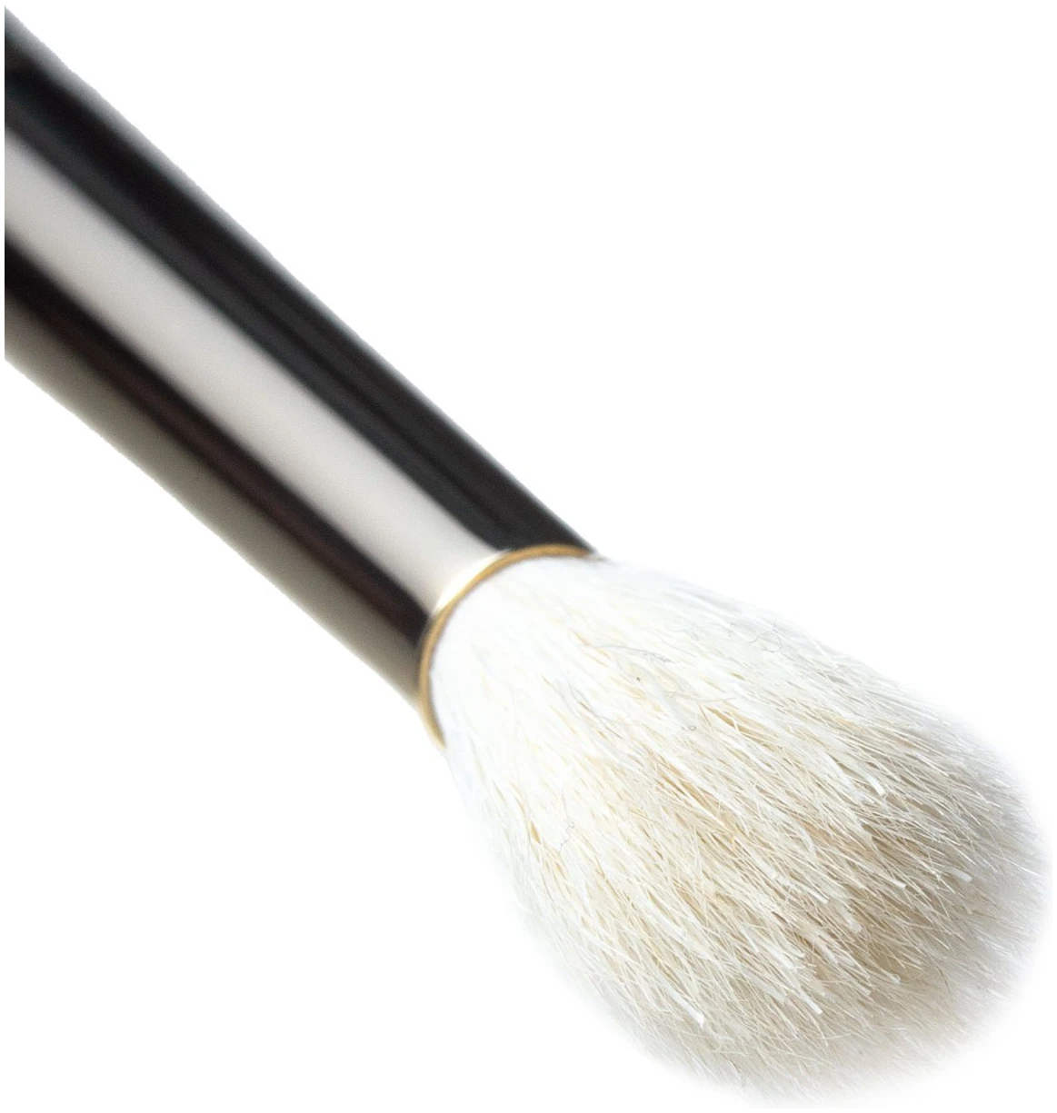 Кръгла четка за очи от висококачествен естествен косъм от коза. Подходяща за нанасяне на сухи продукти. Подходяща за опушване и блендиране.